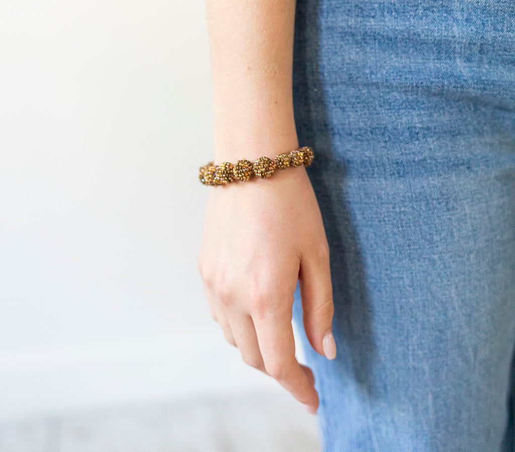 High quality glass beads and hand-dyed cotton thread over faux pearls