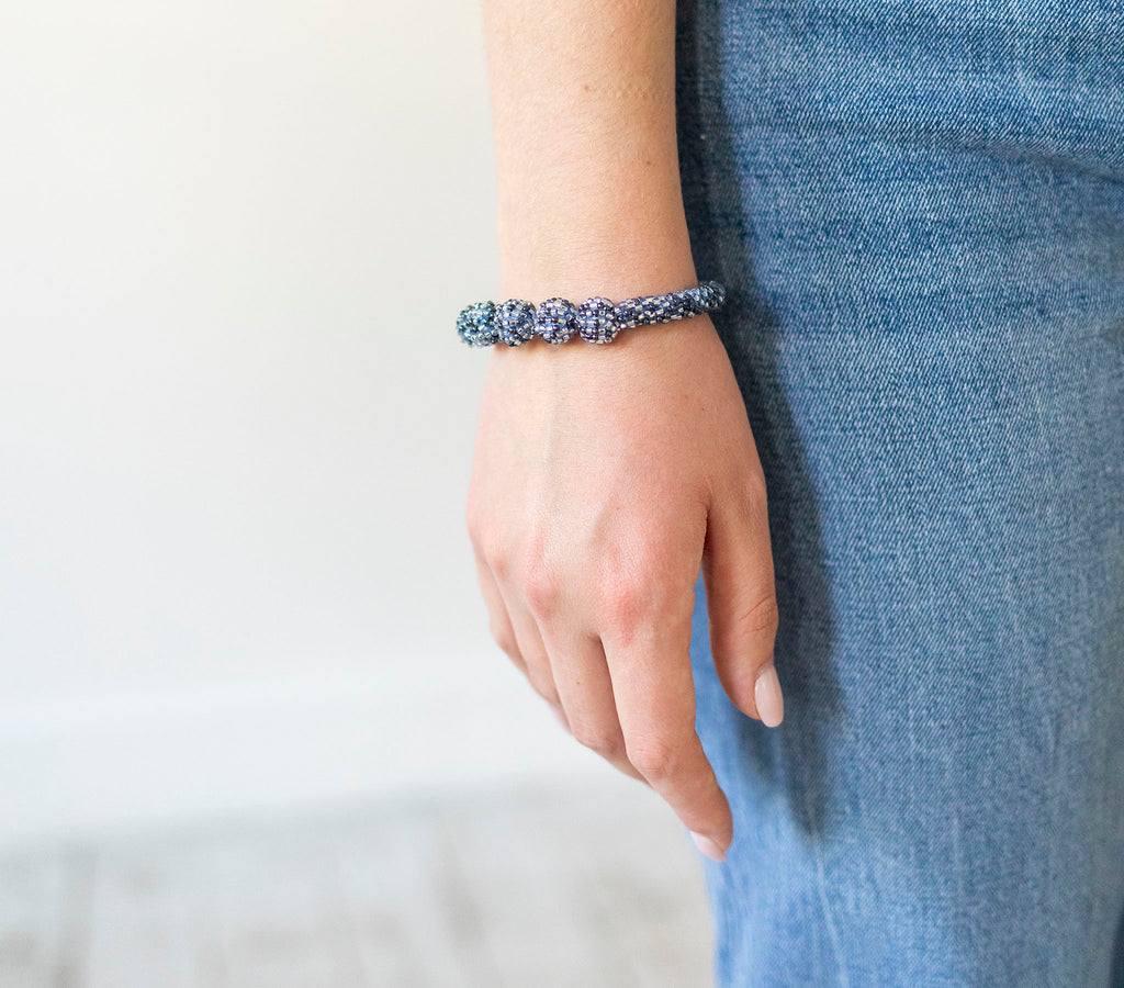 High quality glass beads and hand-dyed cotton thread over faux pearls