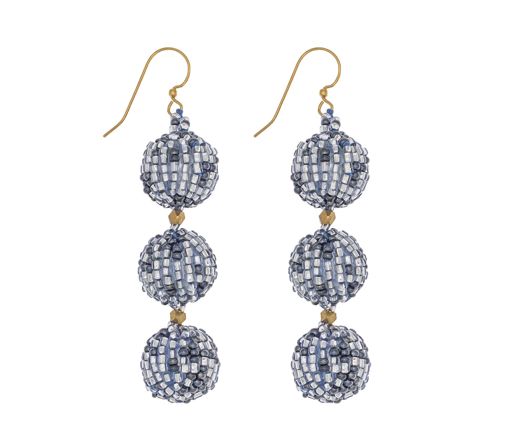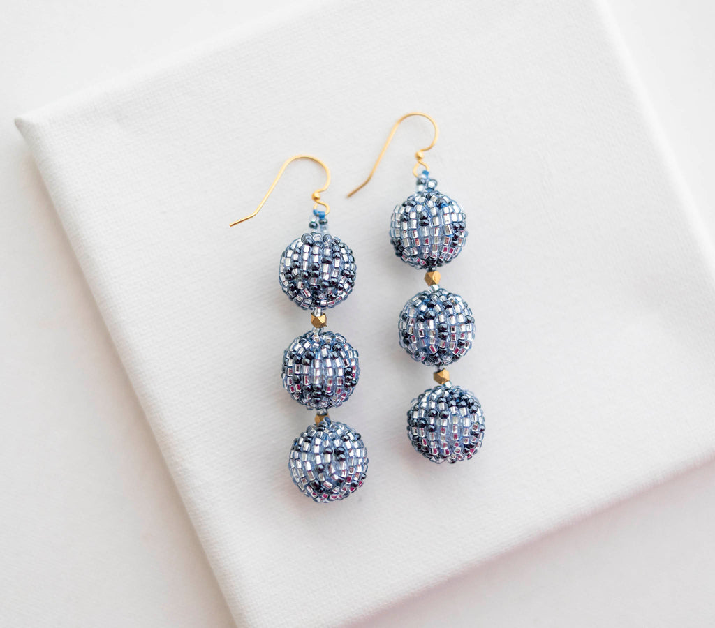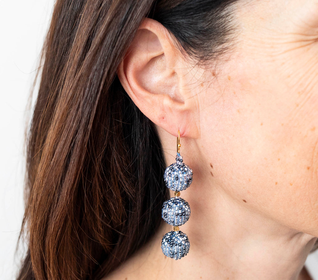 Ethically crafted beaded balls made of glass beads over faux pearls.
