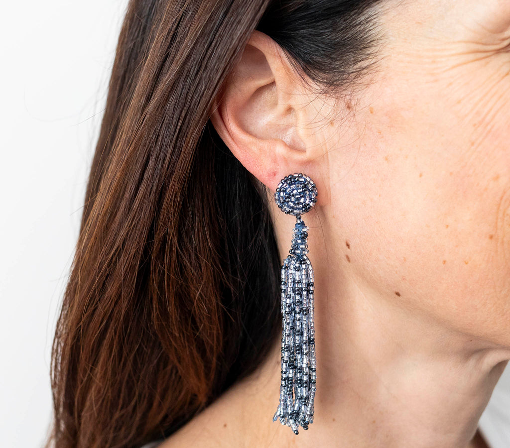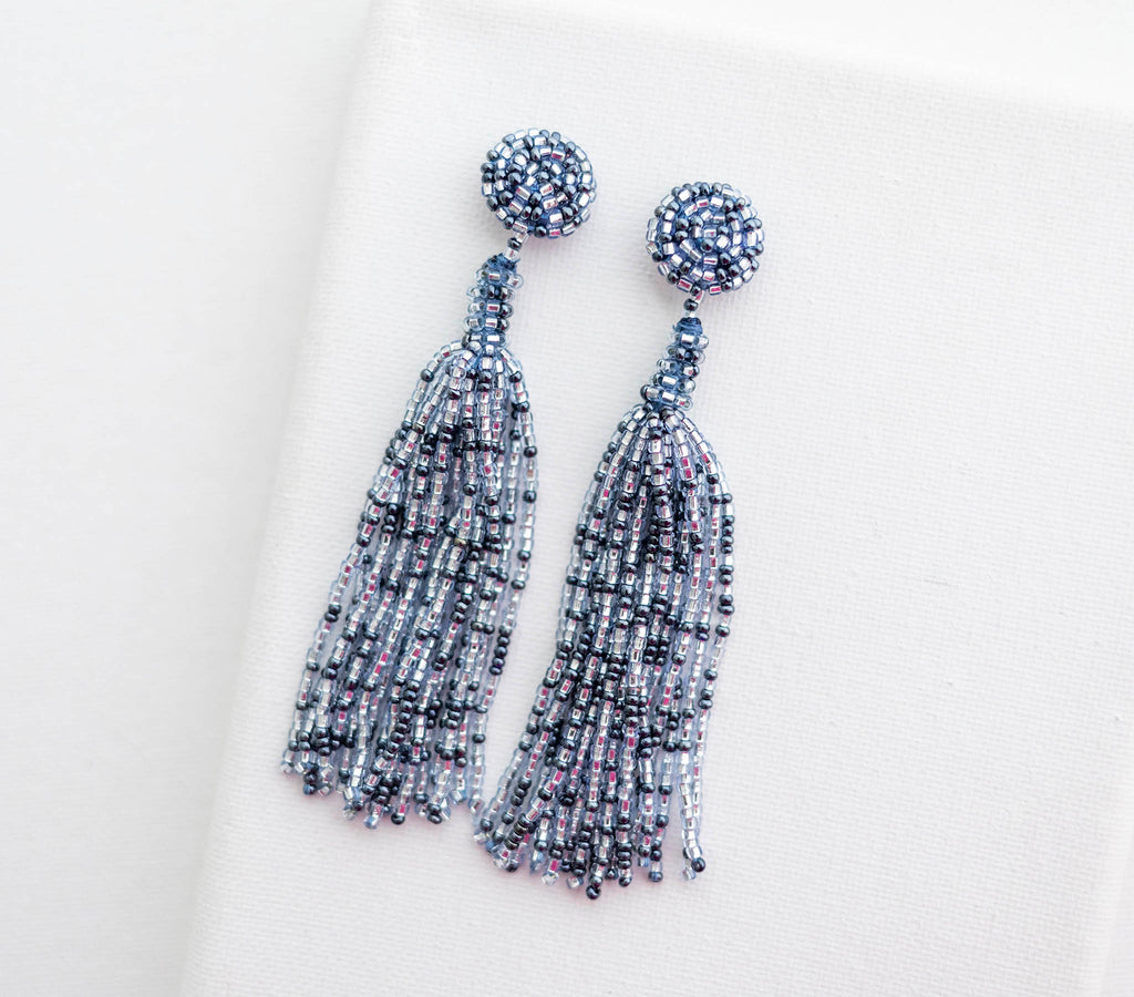 • Beaded post with beaded tassel. 3" Drop